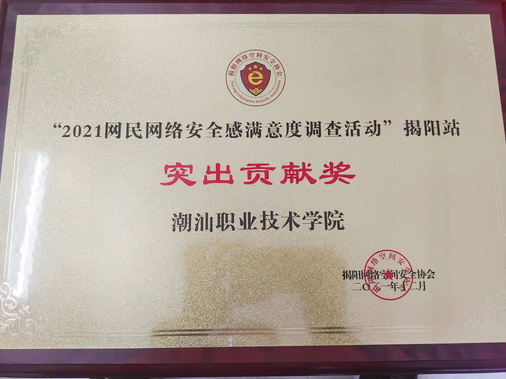 我校在2021网民网络安全感满意度度调查中荣获“社会责任贡献奖”