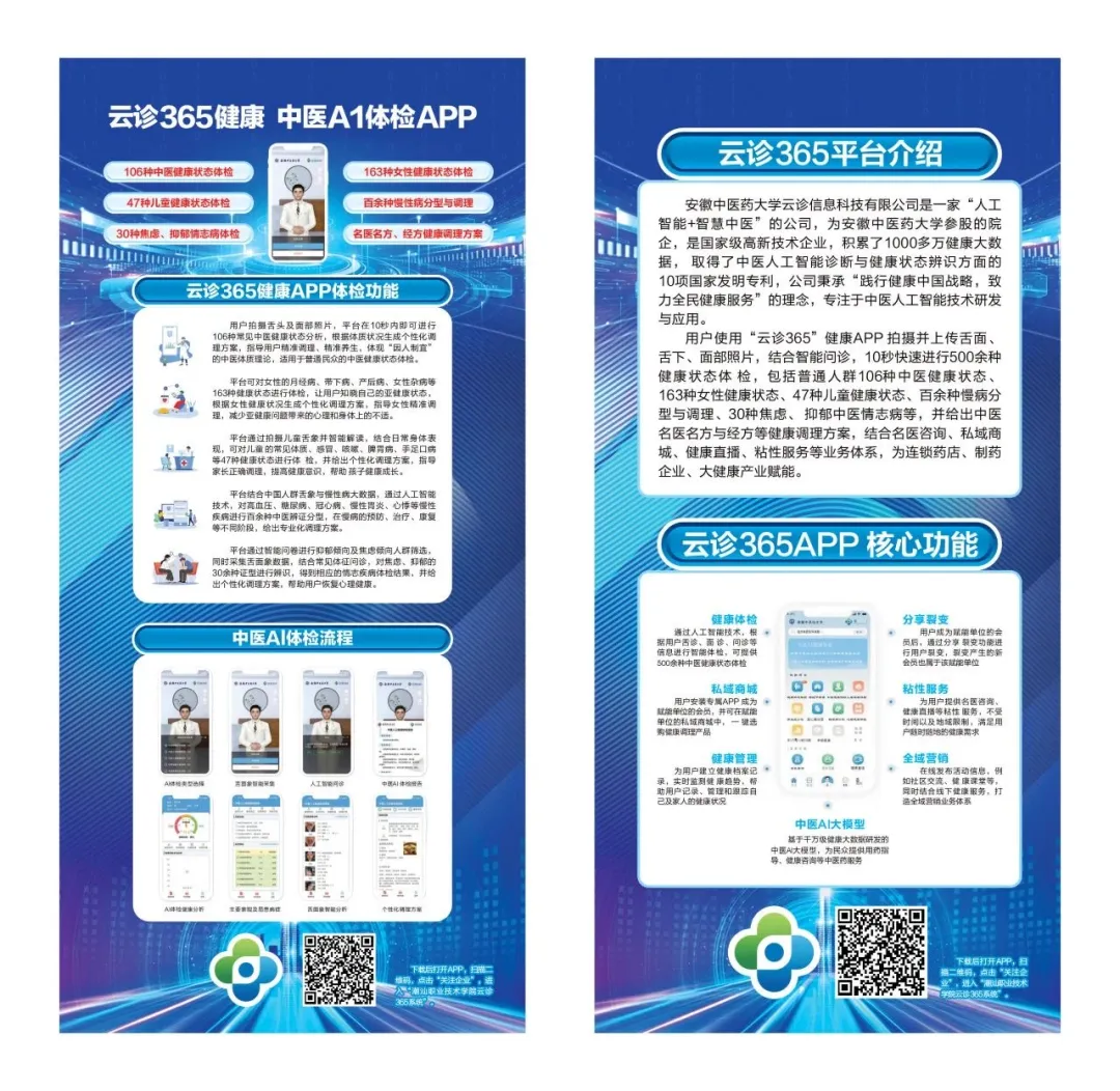 潮汕职业技术学院联合安徽中医药大学云诊信息科技有限公司共同研发的一款中医AI体检APP“云诊365”在会上亮相发布,引起热烈反响,现场专家学者在体验后,纷纷对此科技创新项目高度赞赏。