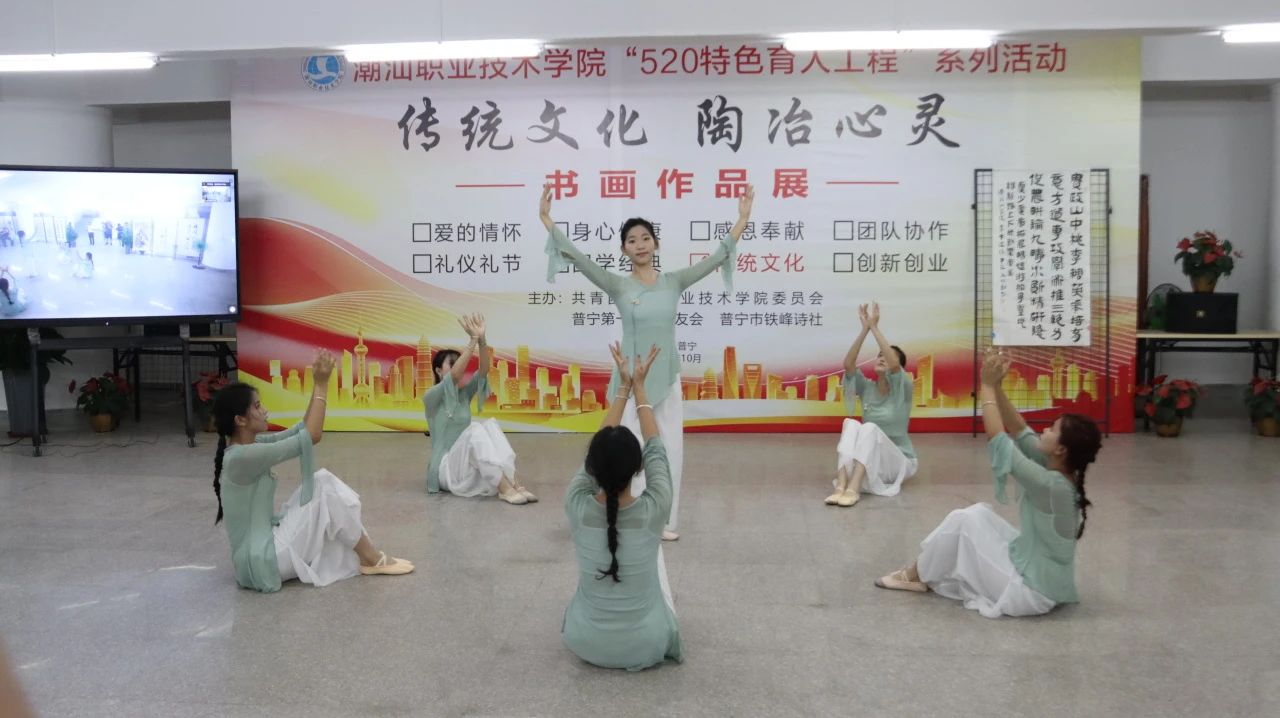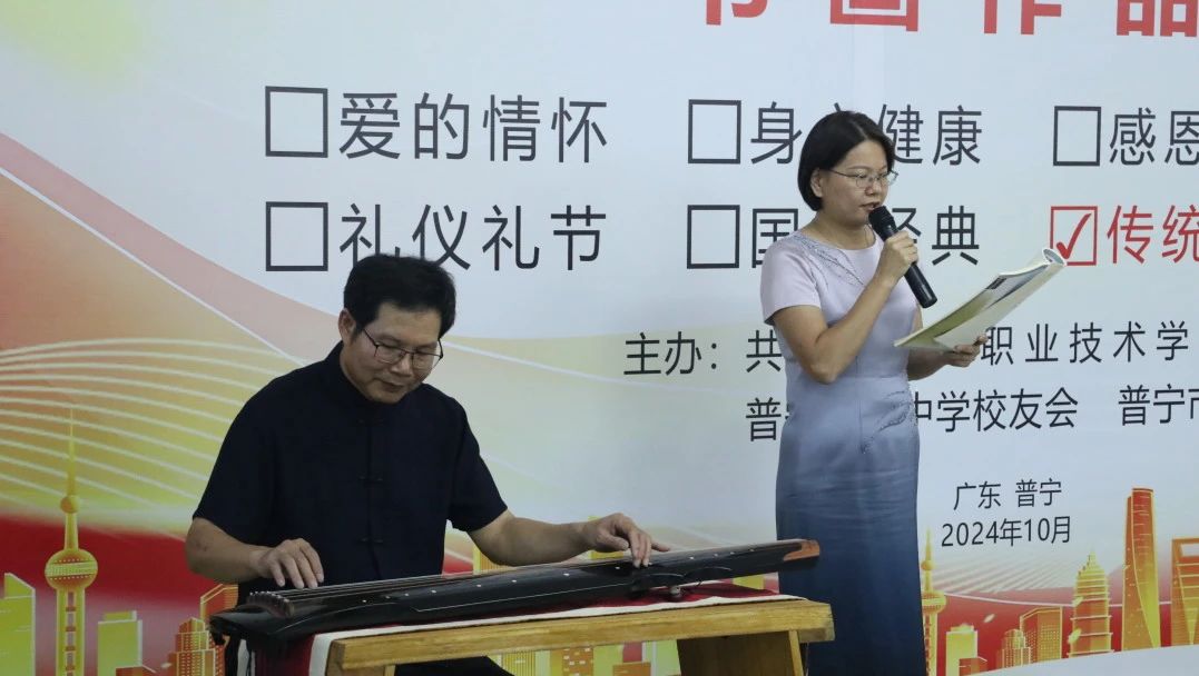 10月12日下午,由潮汕职业技术学院(以下简称“潮汕学院”)、普宁市第一中学校友会、普宁市铁峰诗社联合主办的“传统文化 陶冶心灵”书画作品展开幕式在潮汕学院举行。